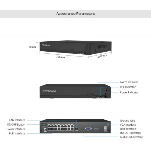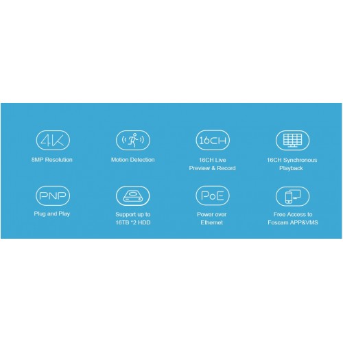 POE Foscam FNA216HE 16路超高清 4K 8.0MP網絡硬盤錄影機NVR 支持ONVIF