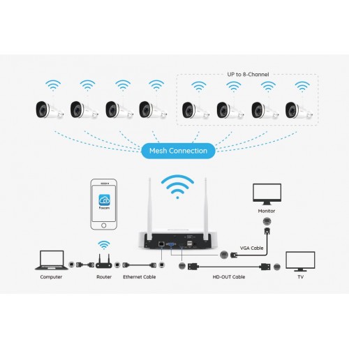 Foscam FN8108W-B4 8路2K/3MP網狀無線Mesh高清網絡監控錄影機套裝(4 Cams + 1TB HDD)