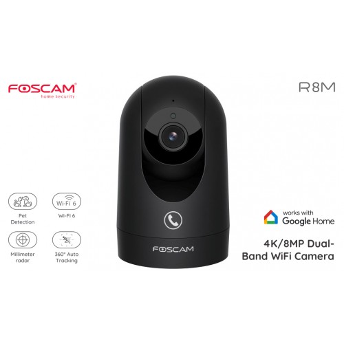 Foscam R8M無線網絡攝影機UHD 4K 8.0MP 雙頻 WiFi 6,雙向一鍵通話,毫米波雷達 360° 自動追蹤 黑色